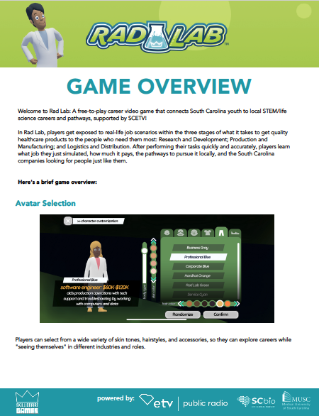 Rad Lab was designed for meaningful impact with minimal effort from educators. Students can launch the game as new players or through Google Single Sign-On, set up their avatar in under five minutes, and then jump straight into gameplay and industry-informed environments. To ensure students see New Haven’s most relevant career pathways and local companies, please have them enter their local ZIP code during account setup.